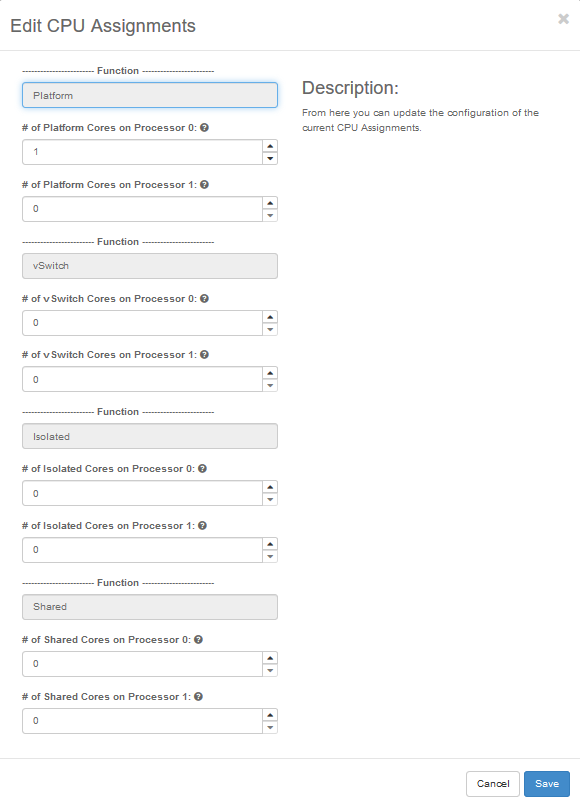 Only the Platform function is shown, and all available cores are automatically assigned as platform cores.