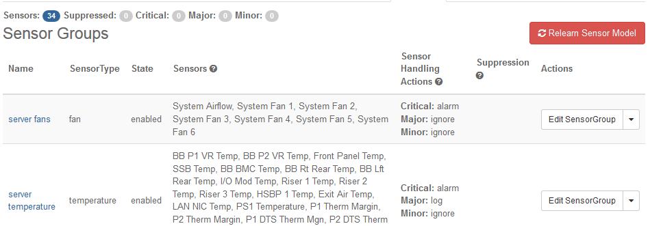 You may need to update the information on the Sensors tab manually if the sensor model changes for any reason (for example, because the BMC firmware is upgraded). An out-of-date sensor model can cause false alarms or errors.