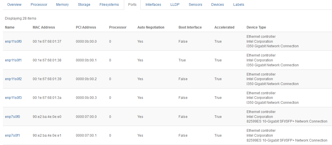 The Ports tab on the Host Detail page presents information about the physical ports on a host.