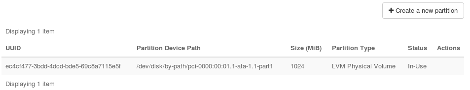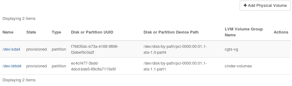 On controller and worker hosts, this list shows physical volumes (disk or partitions) assigned to local volume groups.