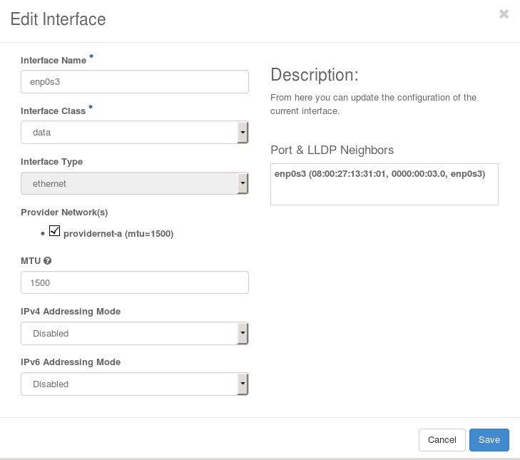 The ability to change the interface settings is especially useful for updating the management interface. When a worker node is first created, its internal management interface is automatically set up using the default Interface Type (ethernet). If you are using LAG on the internal management network, you must update this manually to aggregated ethernet.