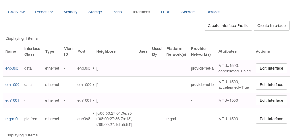 Select the Interfaces tab to display the existing interfaces.