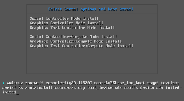For details on how to specify installation parameters such as rootfs device and console port, see Configurable installation parameters.