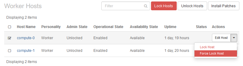 If the Lock Host attempt fails for a worker host, manually relocate containers running on the host, and then try using Lock Host again.