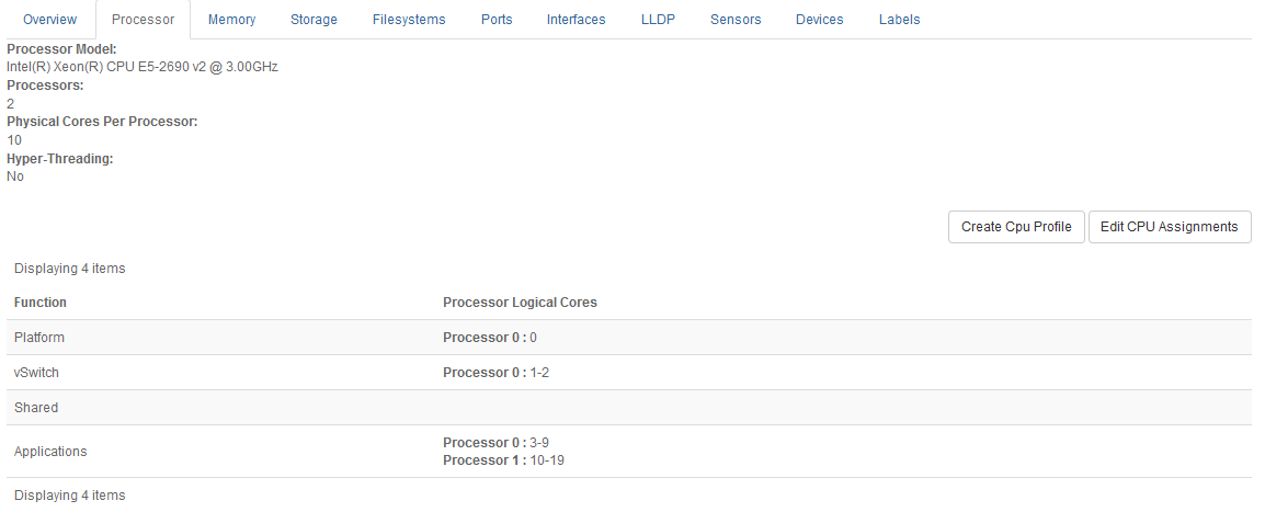 The Processor tab on the Host Detail page presents processor details for a host.